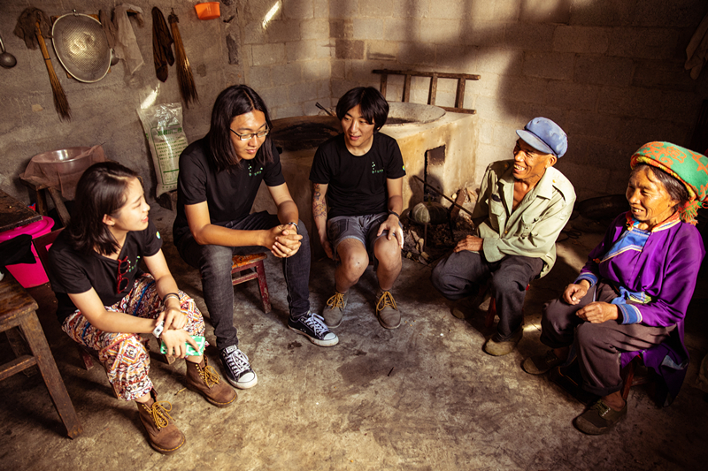 樸實的村民拿出家裏的土特產來招待誌願者們