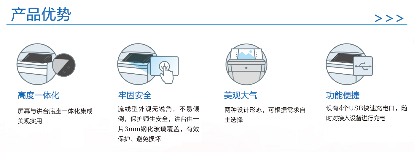 6. ★覆蓋3mm鋼化玻璃,保(bǎo)護屏幕(mù)安(ān)全。屏幕融合在講台中,無突出邊(biān)角撞傷學生,無(wú)法在沒(méi)有工具的情況下拆除。