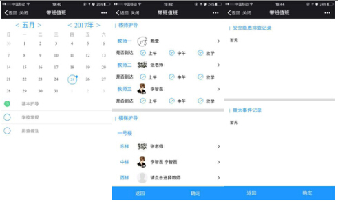 帶班值班是學校領導安排教師負責值班期間的(de)值班記錄,對值班期間發生的問題及時處理,並將處理結果詳細記錄在案,領(lǐng)導可對值班結果在手機上進行查看(kàn),操作更方便,同時提高工作效率。