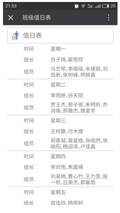 通過班級值日表,教師可安排班(bān)級(jí)日常值日的人員。