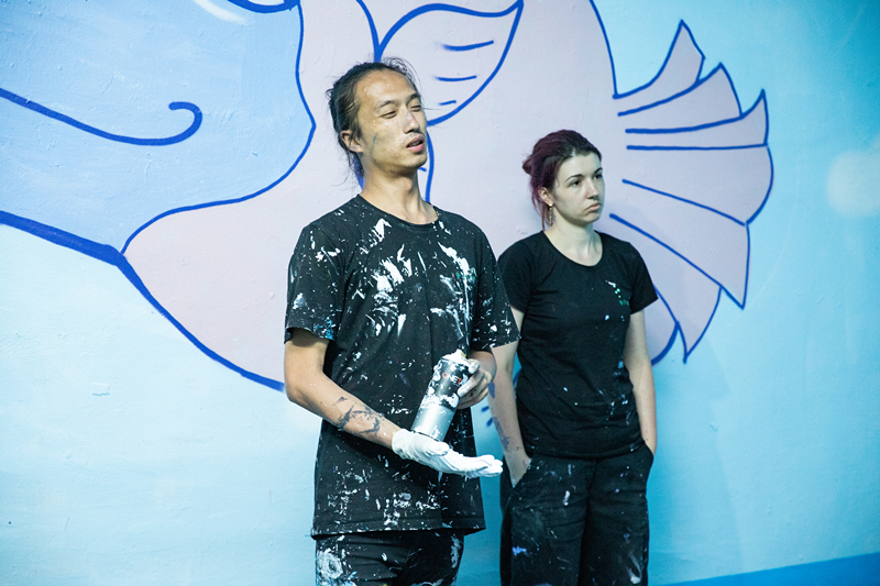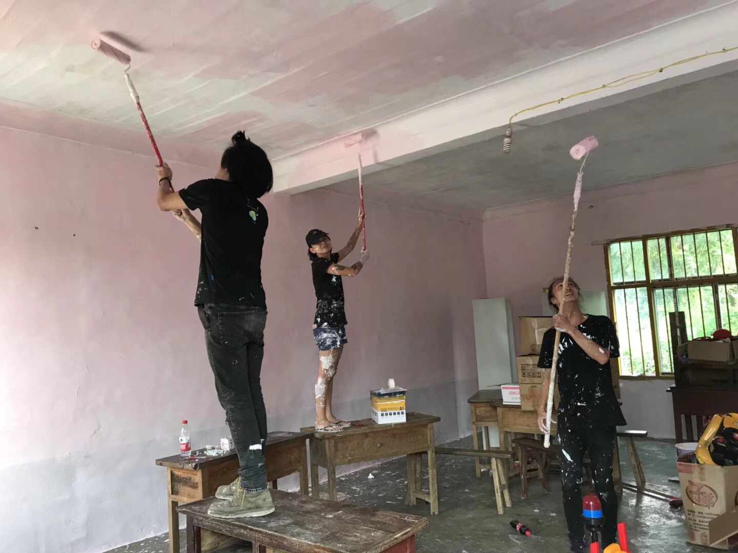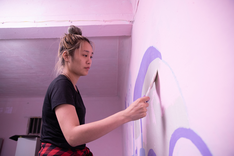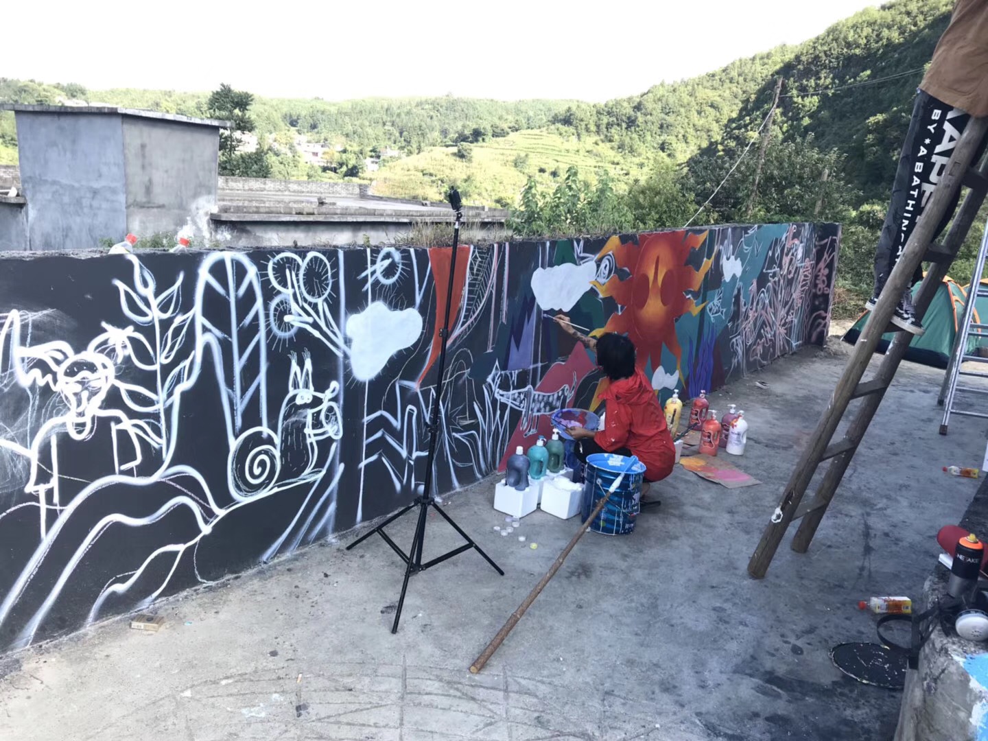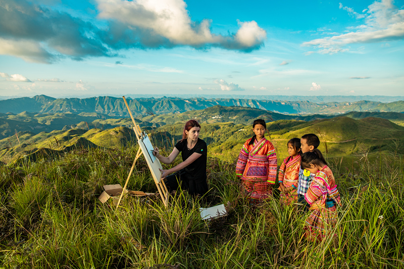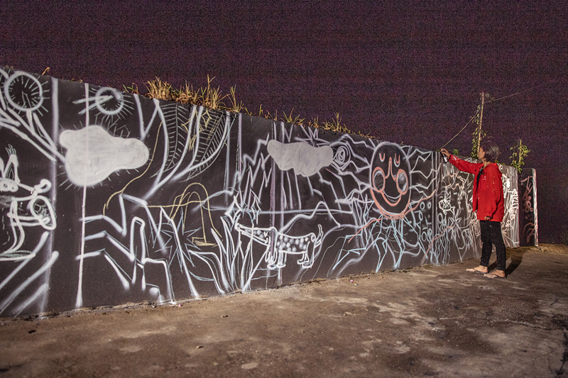 誌願者團隊的每個人各司其職(zhí),忙的時候埋頭工作,累了就坐(zuò)下來彈彈吉他、唱唱歌、聊(liáo)會兒天。為了盡早完成牆壁塗鴉的繪畫,連續幾天挑燈夜戰一直奮鬥到淩(líng)晨2點多,這(zhè)是多麽(me)可愛的一群人呀(ya)。