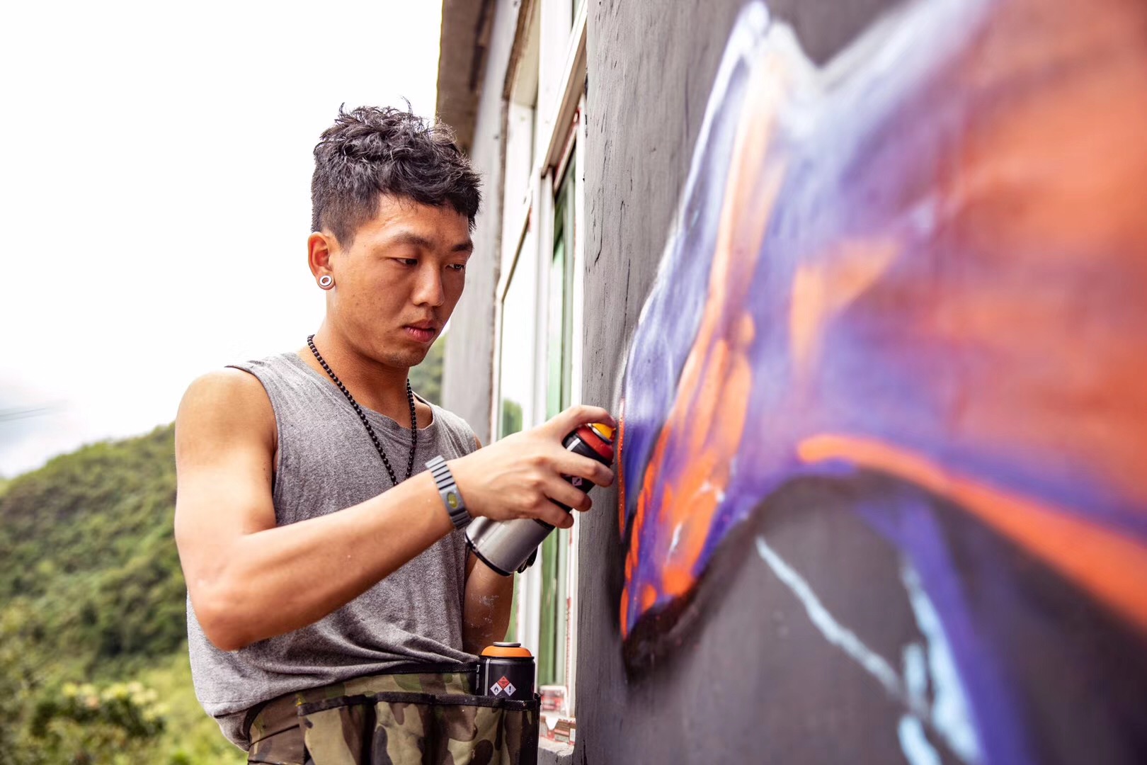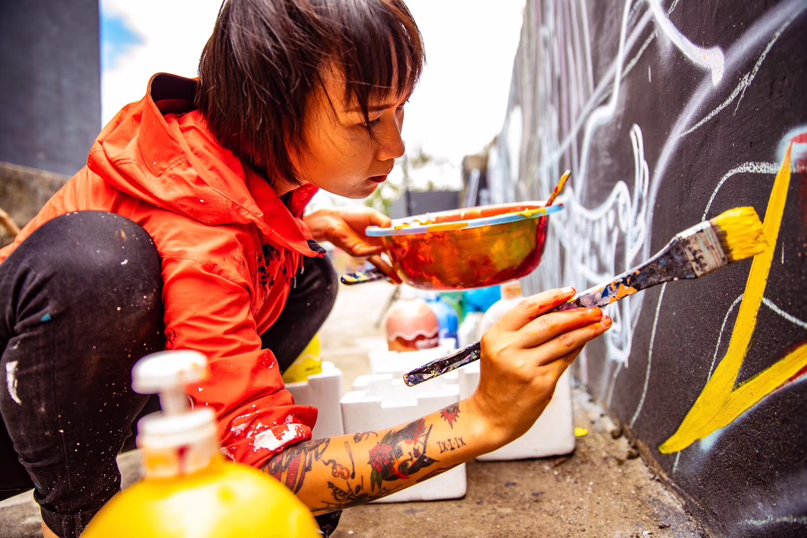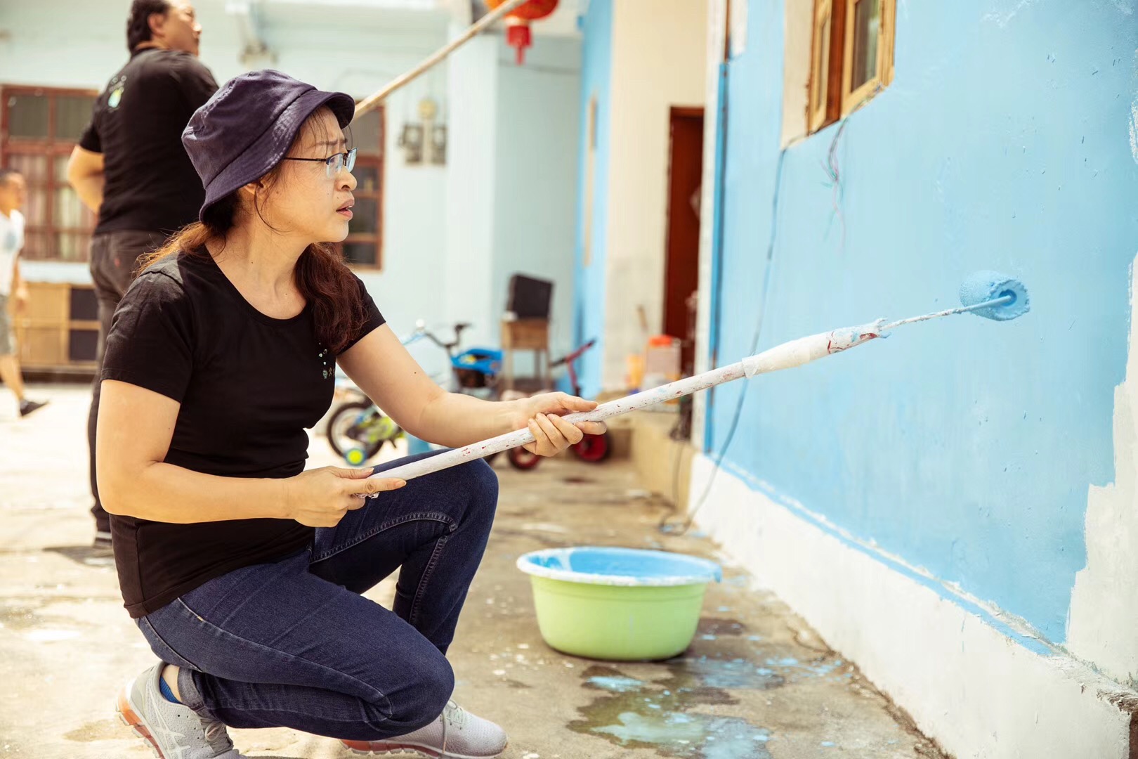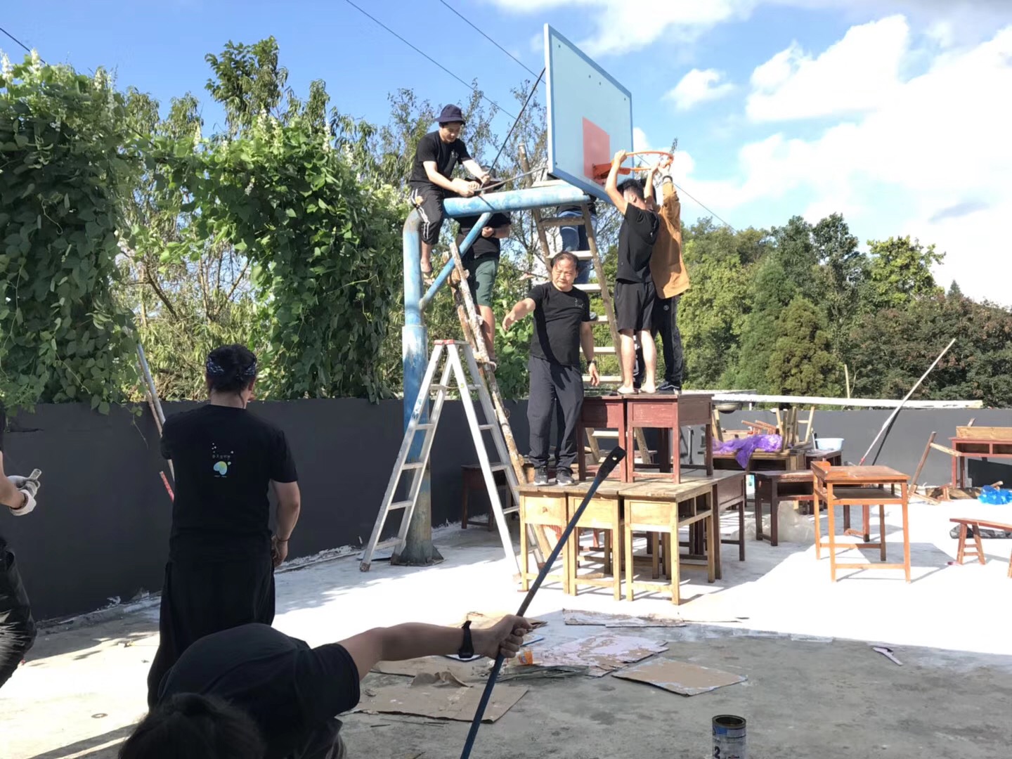 誌願者團隊的每個人各司其職(zhí),忙的時候埋頭工作,累了就坐(zuò)下來彈彈吉他、唱唱歌、聊(liáo)會兒天。為了盡早完成牆壁塗鴉的繪畫,連續幾天挑燈夜戰一直奮鬥到淩(líng)晨2點多,這(zhè)是多麽(me)可愛的一群人呀(ya)。