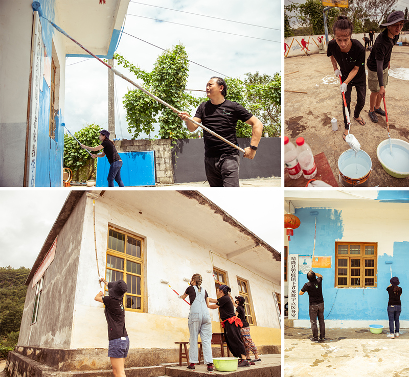 第二天,伴隨著明媚的陽光,粉刷工作正式開始。大家首先對教學點所有的角落、牆壁進行(háng)了大清掃,然後將損(sǔn)壞的地方修補起來,接著就要開(kāi)始浩大的粉(fěn)刷(shuā)工作了。