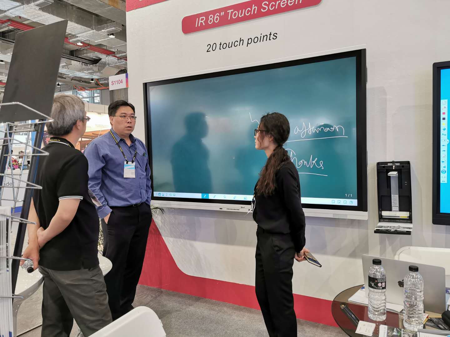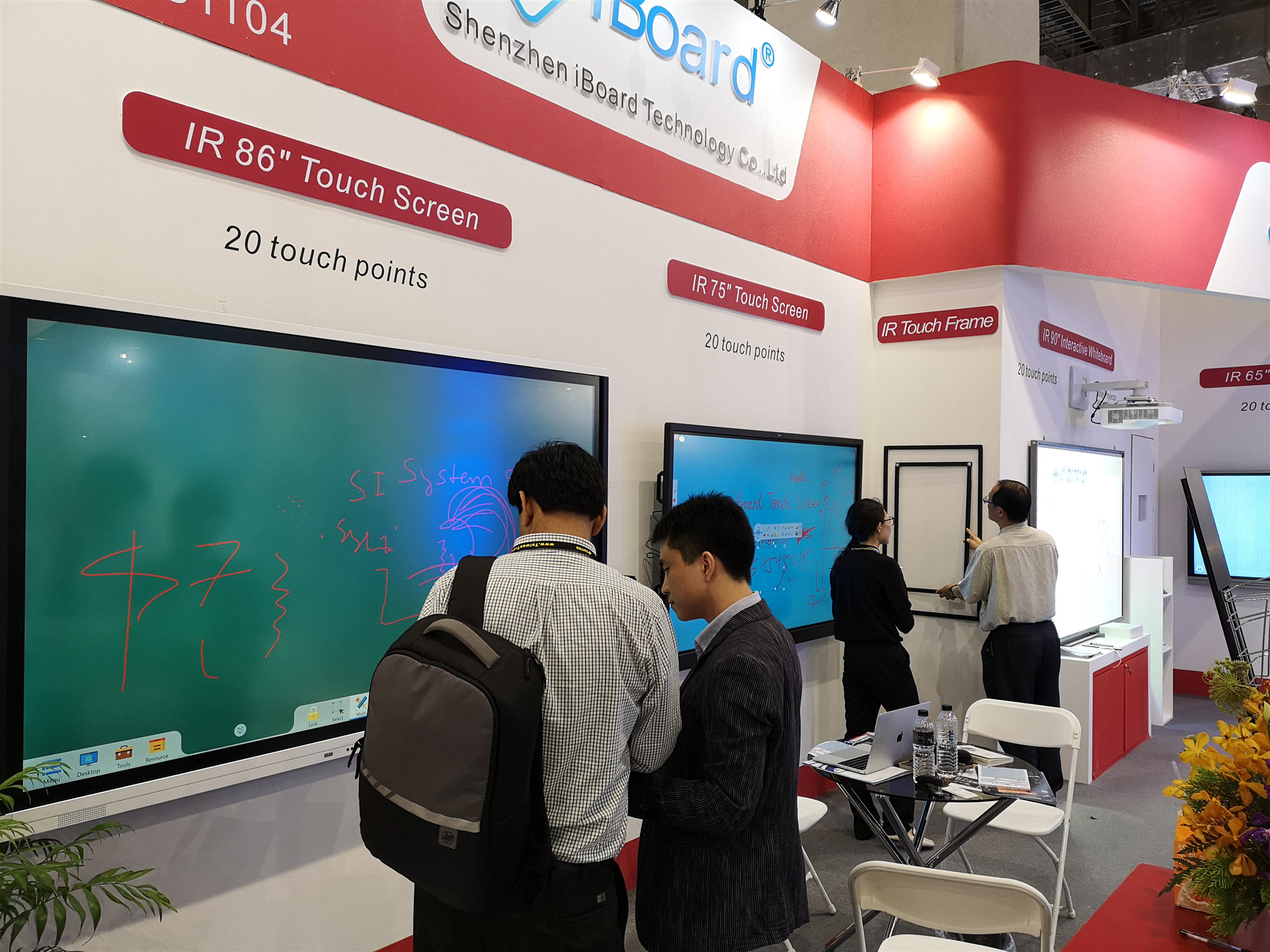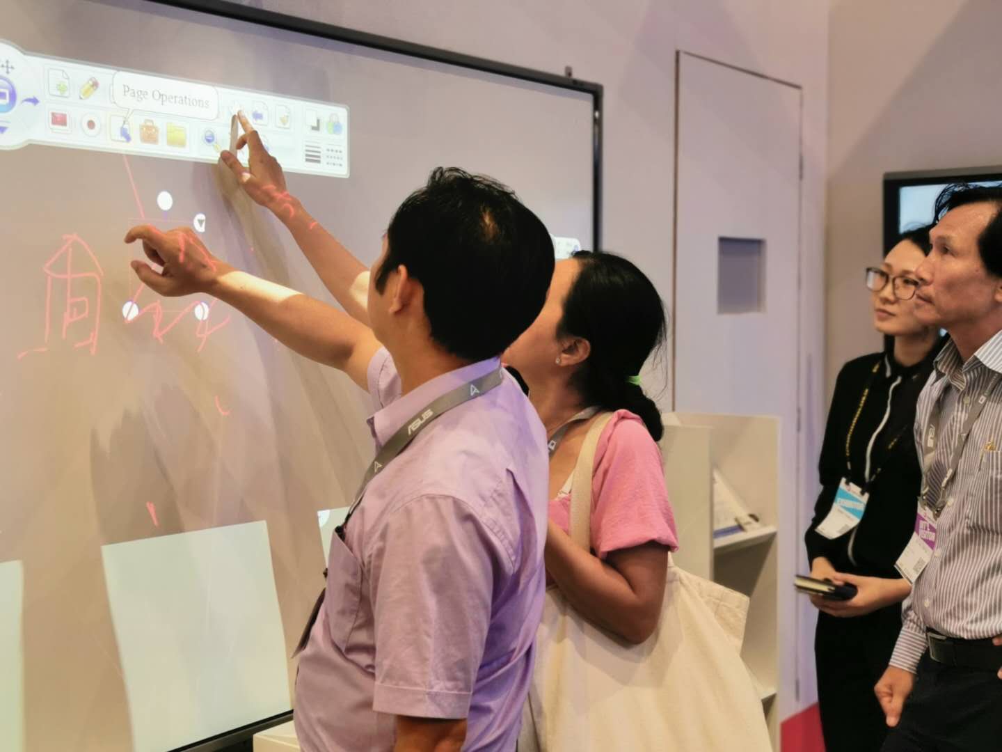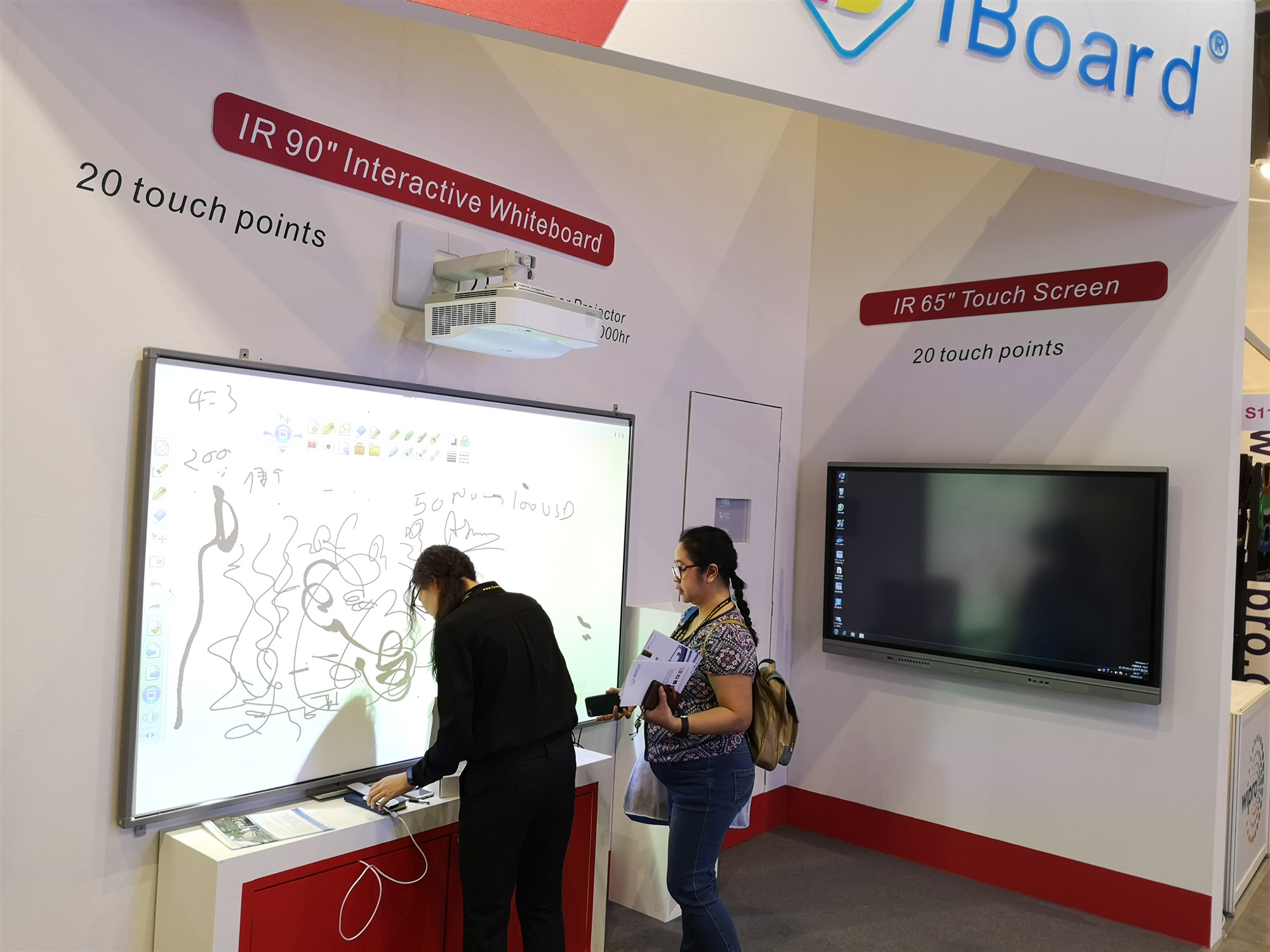 iBoard最新款 90”交互式電子白板同時支持20點觸控,搭配純激光光源的超短焦(jiāo)激光投影機,色彩逼真豔(yàn)麗、明亮清晰,節能環保無毒無害,使用(yòng)壽命高達20000小時,不存(cún)在更換燈泡(pào)光源的問題,高效防塵,更加穩定耐用,更易於安(ān)裝、管理。各種硬(yìng)件搭(dā)配DrawView白板教(jiāo)學(xué)軟件、大小屏互動(dòng)軟件等組合而成的(de)智慧教育教學(xué)環境(jìng)更是吸引現場觀眾紛紛(fēn)前來體驗,不少客戶都表示(shì)蜜桃my.1688.com视频的產品操作簡(jiǎn)便,界麵友好,相比(bǐ)同類教育產品更貼近實際需求(qiú)!